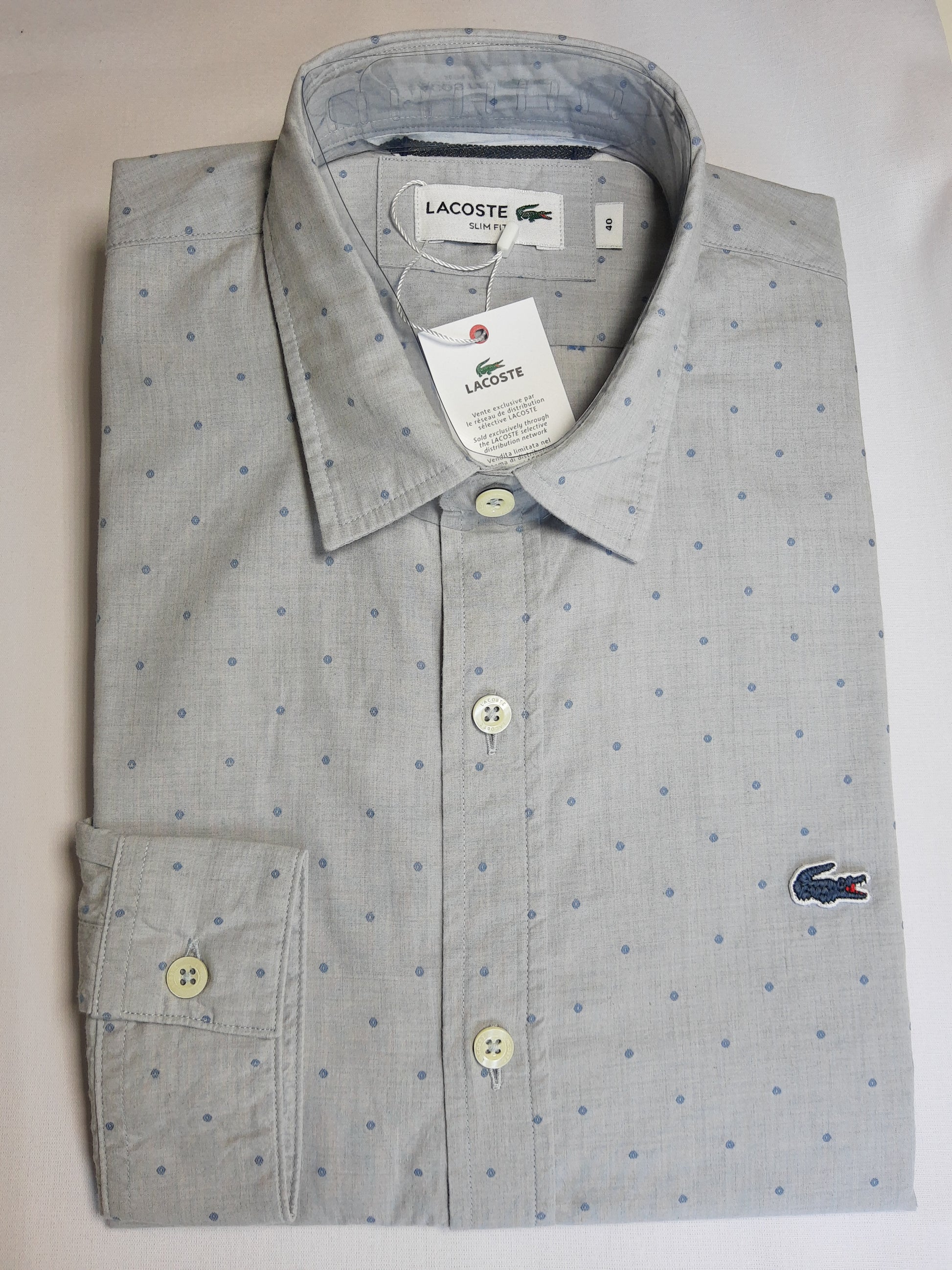 Camisa Lacoste Gris con puntos Slim Fit - PH4270